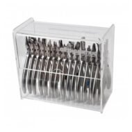 La transparencia del acrílico permite una fácil visualización y selección de los instrumentos, mientras que su diseño compacto maximiza el uso del espacio en su consultorio. Además, su estructura robusta asegura la protección de los alicates contra posibles daños o contaminaciones, manteniendo un entorno de trabajo higiénico y organizado.
